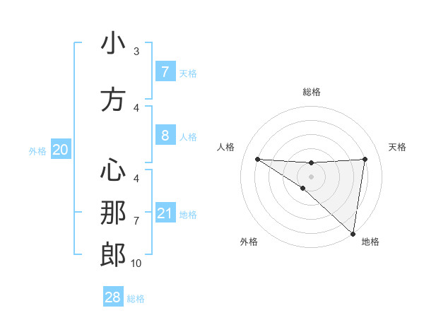 小方 心那郎さんを姓名の画数から五運を鑑定
