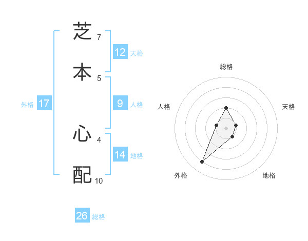 芝本 心配さんの総格は26画の2点!
