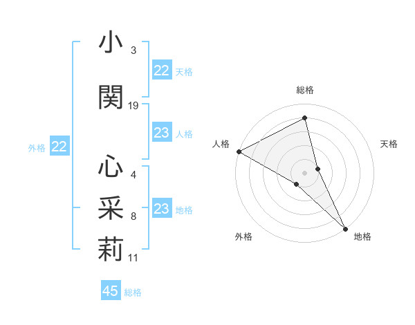 小関 心采莉さんを姓名の画数から五運を鑑定