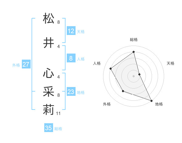 松井 心采莉さんを姓名の画数から五運を鑑定