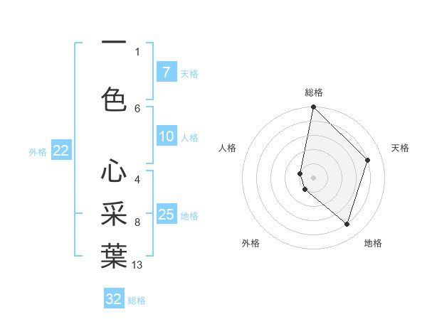 一色 心采葉さんの総格は32画の5点!