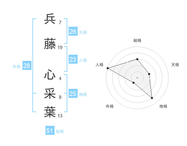 兵藤 心采葉さんの総格は51画の3点!
