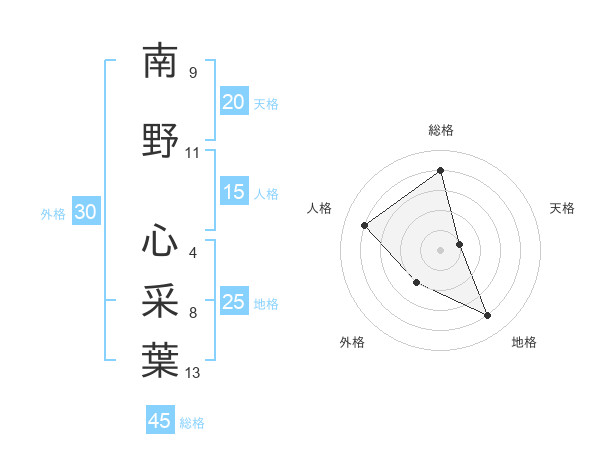 南野 心采葉さんの総格は45画の4点!