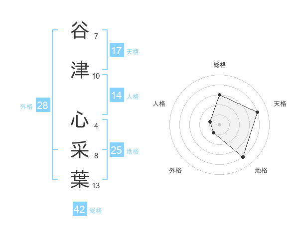 谷津 心采葉さんを姓名の画数から五運を鑑定