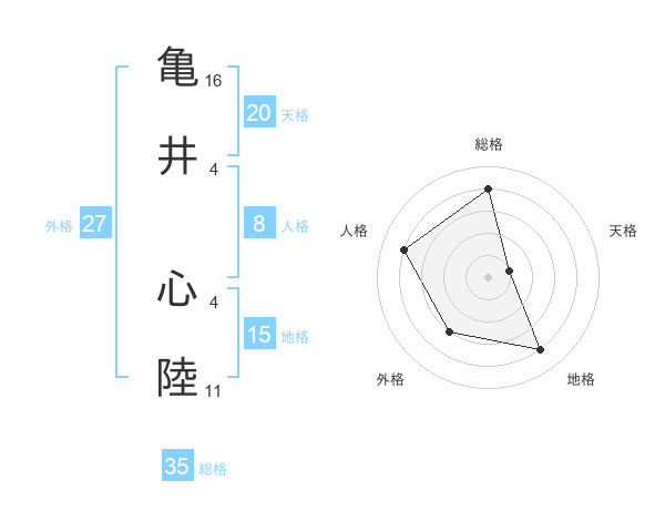 亀井 心陸さんを姓名の画数から五運を鑑定