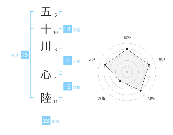 五十川 心陸さんを姓名の画数から五運を鑑定