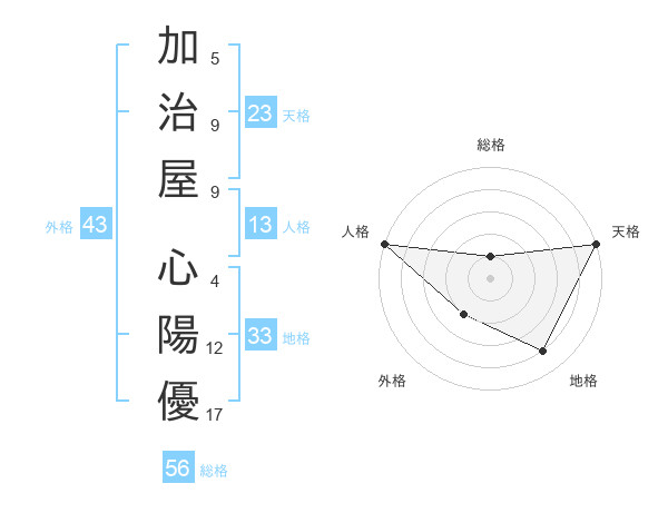 加治屋 心陽優さんを姓名の画数から五運を鑑定