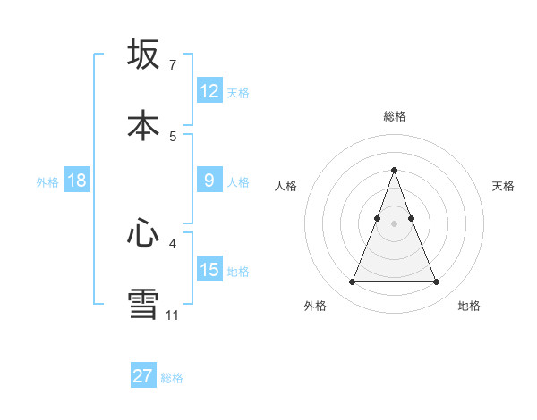 坂本 心雪さんを姓名の画数から五運を鑑定