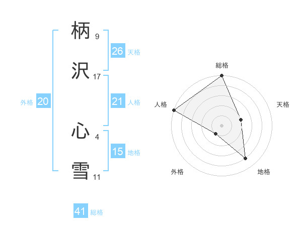 柄沢 心雪さんを姓名の画数から五運を鑑定