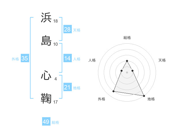 浜島 心鞠さんを姓名の画数から五運を鑑定