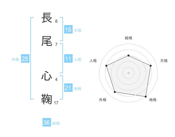 長尾 心鞠さんの天格は15画の4点!