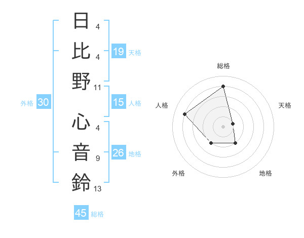 日比野 心音鈴さんの総格は45画の4点!