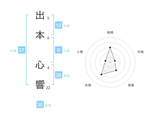 出本 心響さんの地格は26画の2点!
