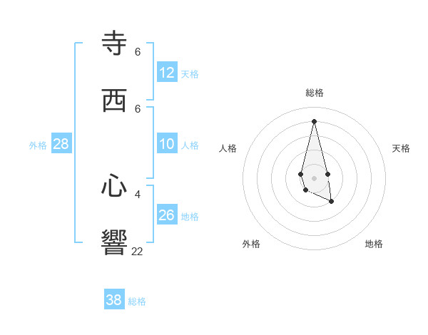 寺西 心響さんの総格は38画の4点!