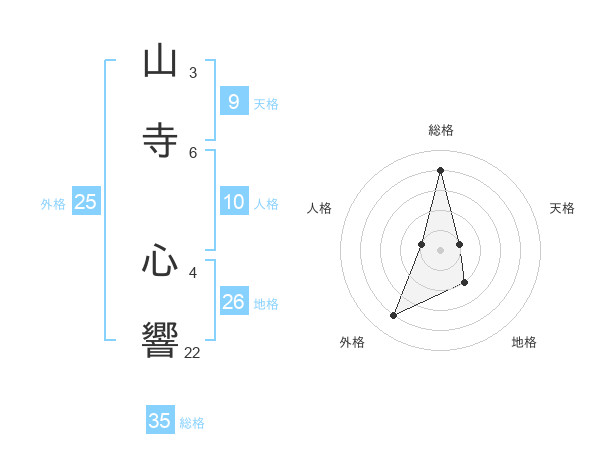 山寺 心響さんの総格は35画の4点!