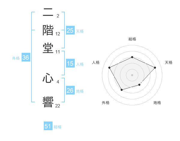 二階堂 心響さんの総格は51画の3点!
