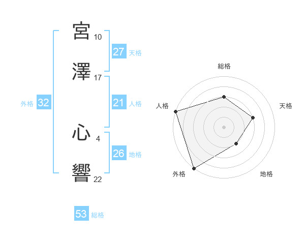 宮澤 心響さんを姓名の画数から五運を鑑定