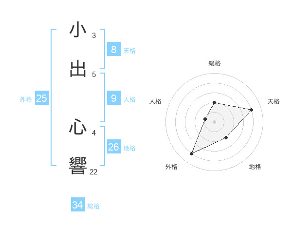 小出 心響さんの総格は34画の2点!