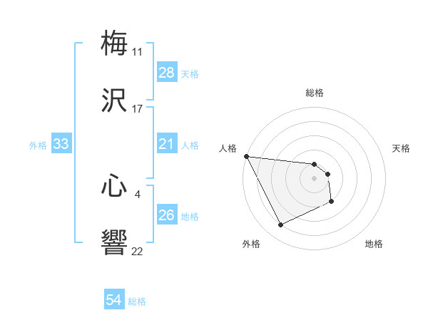梅沢 心響さんを姓名の画数から五運を鑑定