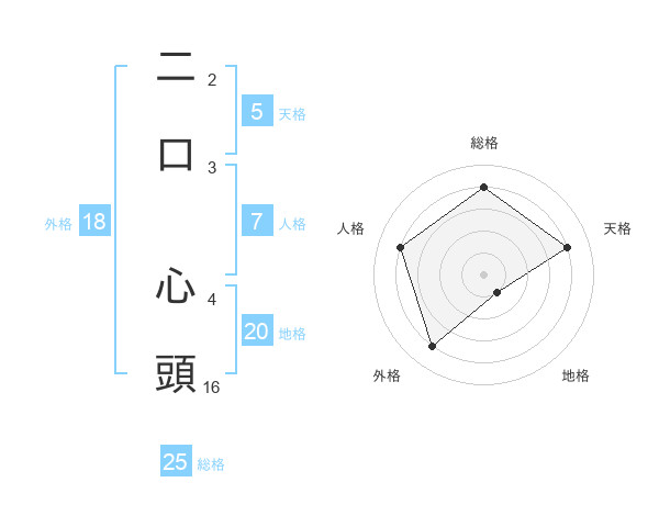 二口 心頭さんの地格は20画の1点!