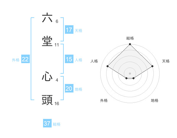 六堂 心頭さんの総格は37画の5点!