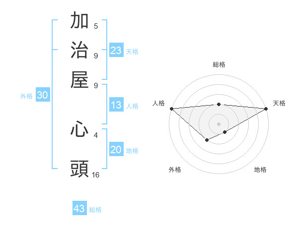 加治屋 心頭さんを姓名の画数から五運を鑑定