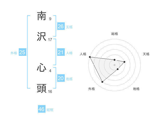 南沢 心頭さんの外格は25画の4点!
