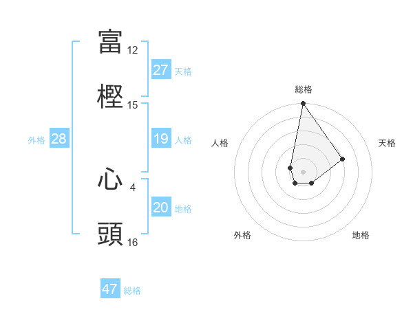 富樫 心頭さんの総格は47画の5点!