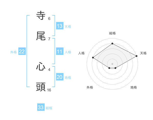 寺尾 心頭さんを姓名の画数から五運を鑑定