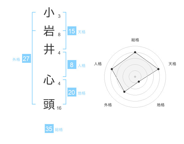 小岩井 心頭さんの総格は35画の4点!
