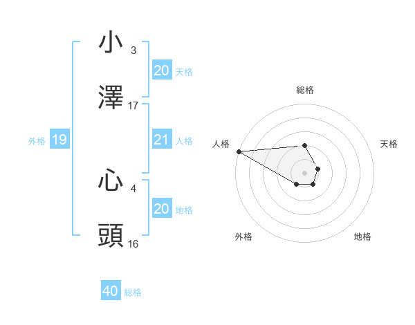 小澤 心頭さんの天格は20画の1点!