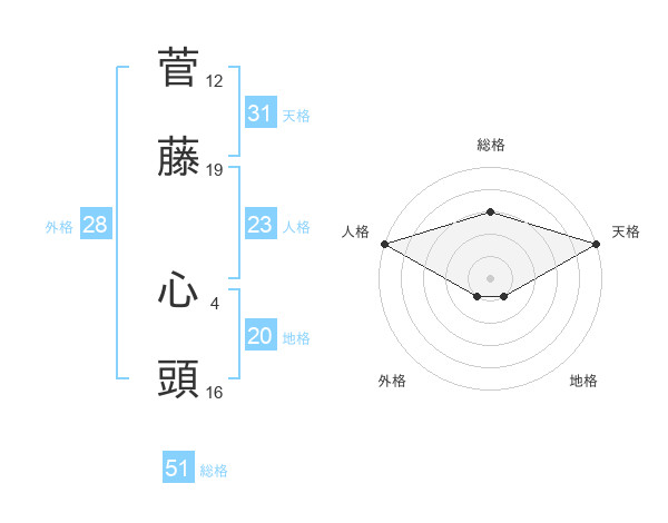 菅藤 心頭さんの天格は31画の5点!
