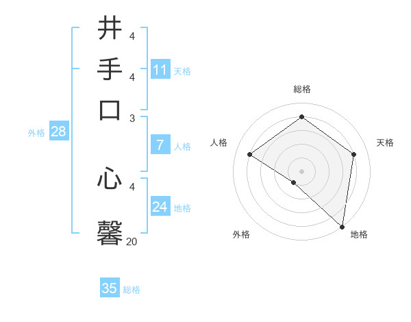 井手口 心馨さんを姓名の画数から五運を鑑定