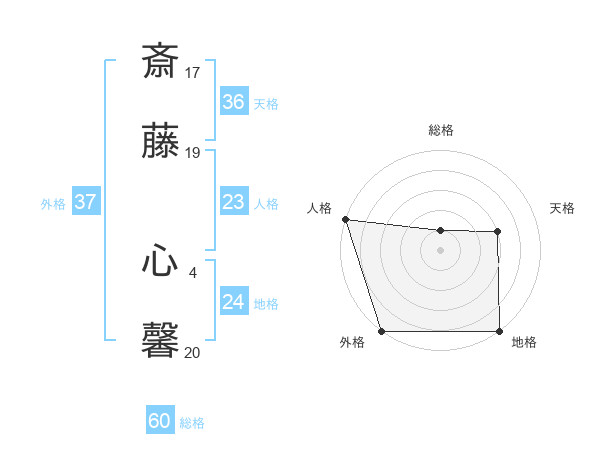 斎藤 心馨さんを姓名の画数から五運を鑑定