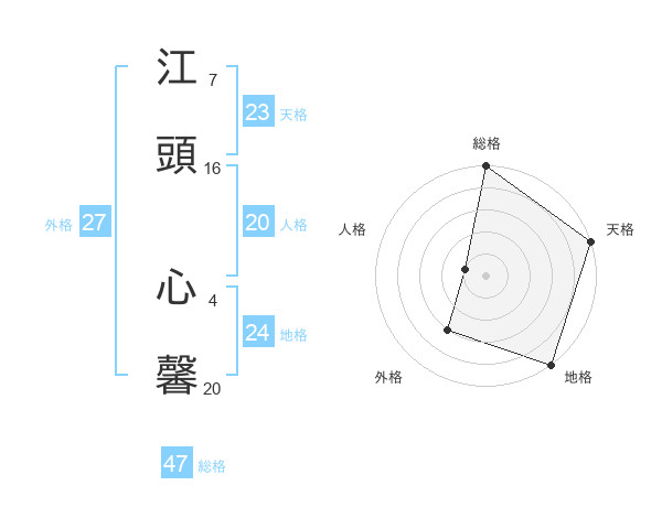 江頭 心馨さんを姓名の画数から五運を鑑定