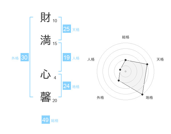 財満 心馨さんを姓名の画数から五運を鑑定