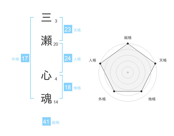 三瀬 心魂さんを姓名の画数から五運を鑑定