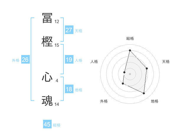 冨樫 心魂さんの総格は45画の4点!