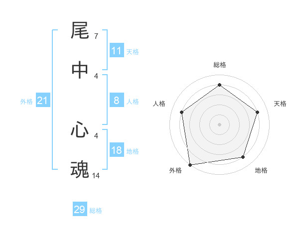 尾中 心魂さんを姓名の画数から五運を鑑定