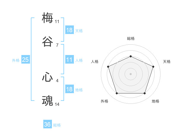 梅谷 心魂さんを姓名の画数から五運を鑑定