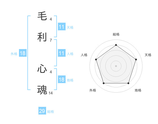 毛利 心魂さんを姓名の画数から五運を鑑定