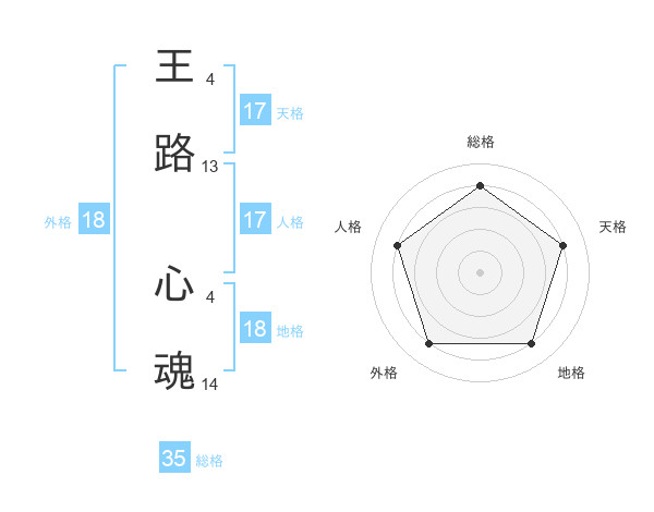 王路 心魂さんの天格は17画の4点!