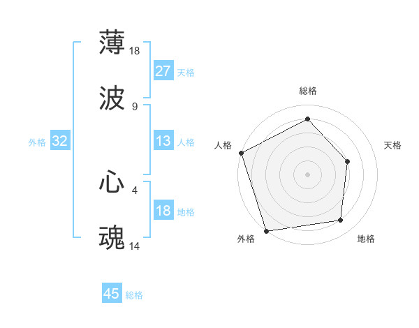薄波 心魂さんを姓名の画数から五運を鑑定