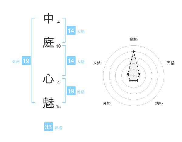 中庭 心魅さんを姓名の画数から五運を鑑定