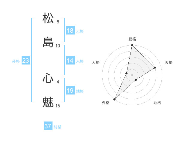 松島 心魅さんの総格は37画の5点!