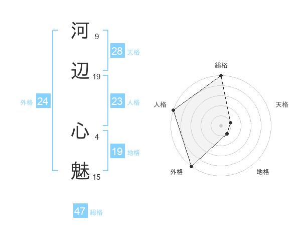 河辺 心魅さんの総格は47画の5点!