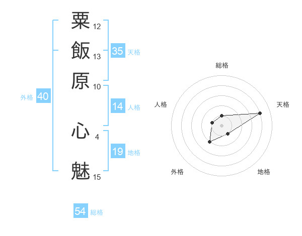 粟飯原 心魅さんの総格は54画の1点!