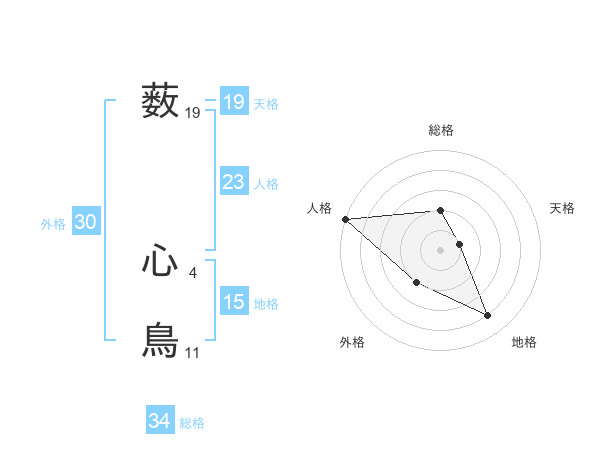 薮 心鳥さんを姓名の画数から五運を鑑定