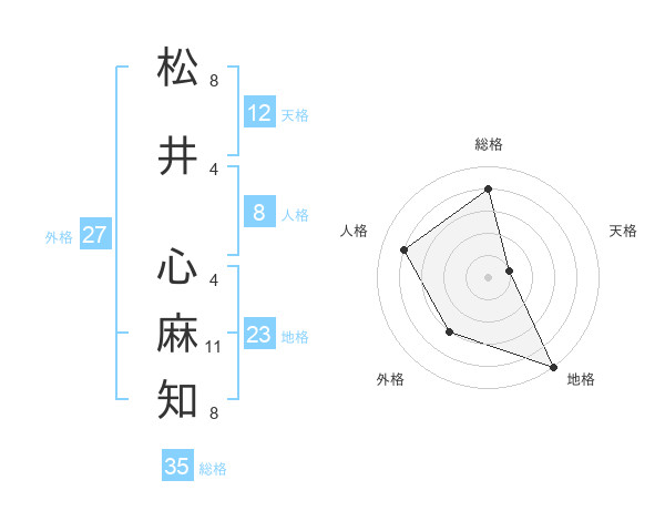 松井 心麻知さんを姓名の画数から五運を鑑定