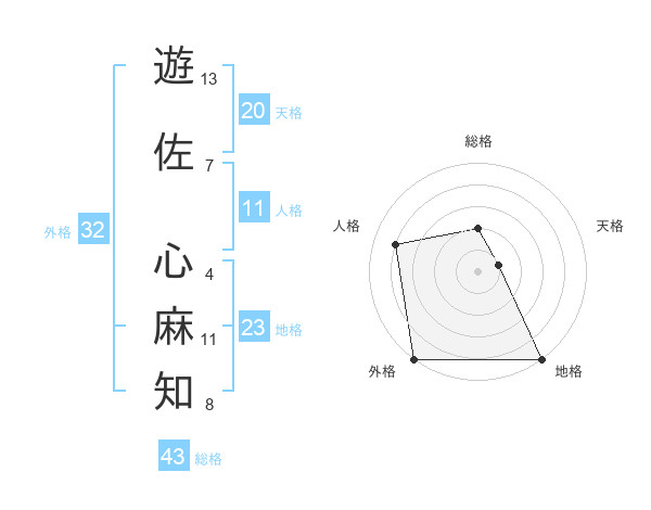 遊佐 心麻知さんの外格は32画の5点